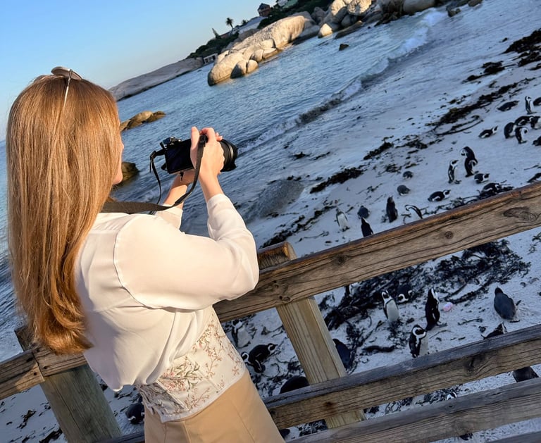 I did wear white a few times. It worked well on self drives in a closed vehicle or when visiting the penguins in Simon’s Town. On open safari vehicles, I usually layered something neutral over it so it didn’t stand out.