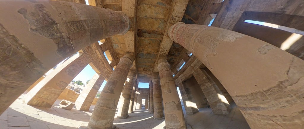 Here is the thing about drones in a place like Karnak or the Valley of the Kings: they would have shown you the scale from above. The Insta360 showed us the scale from inside it.